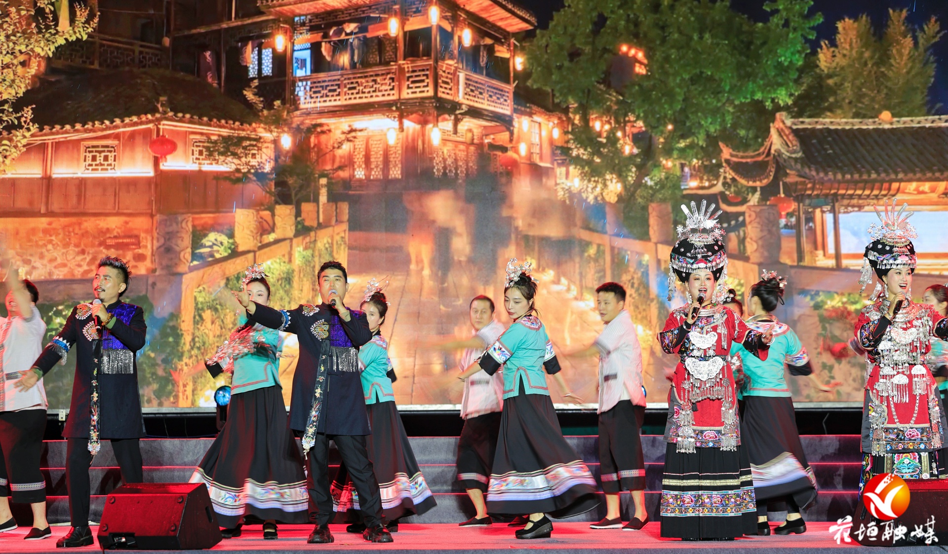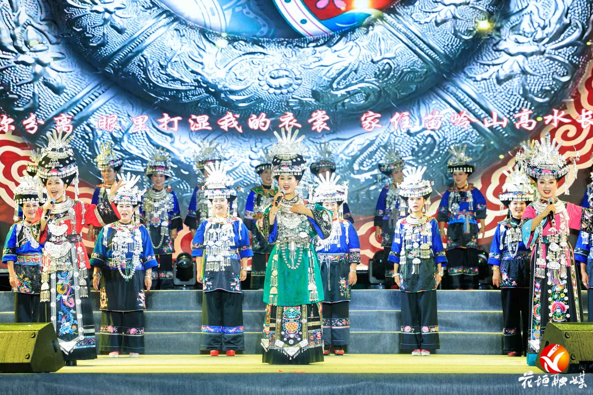 团结之歌响彻苗乡,篝火燃情共舞团圆。