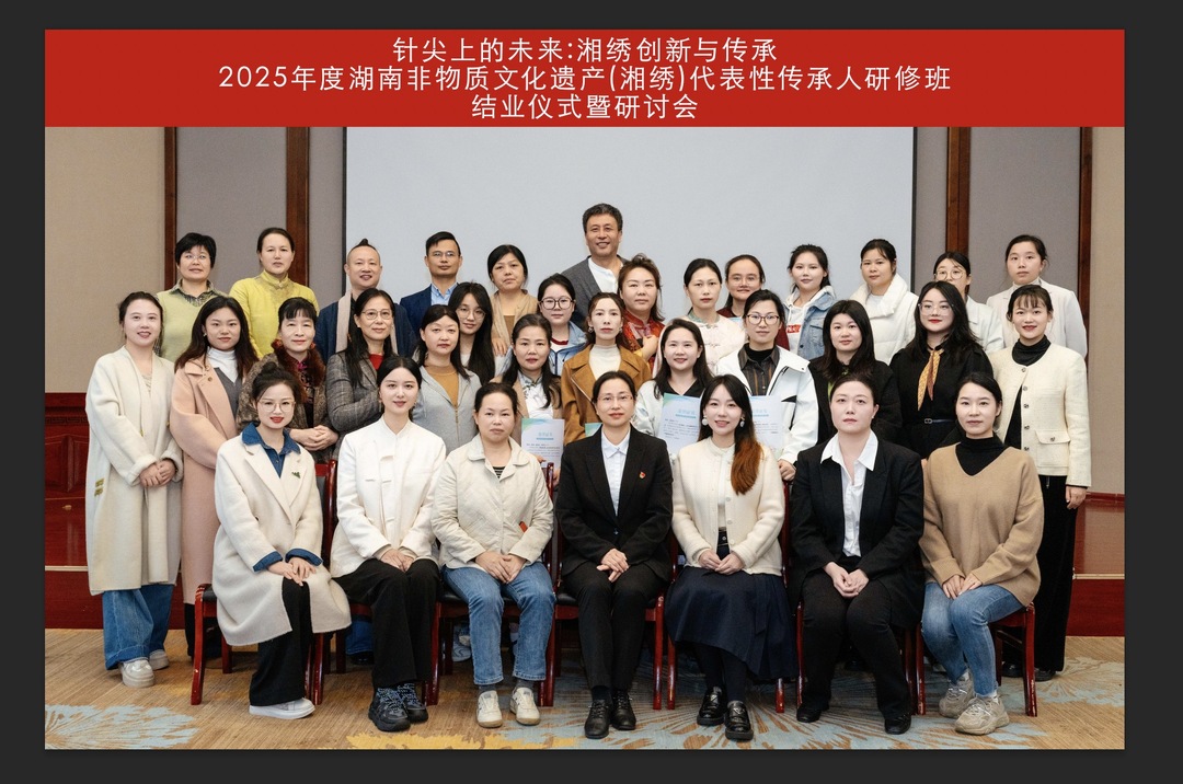 2025年11月6日,由湖南省文化和旅游厅主办、湖南省湘绣研究所承办的2025年度湖南省非物质文化遗产(湘绣)代表性传承人研修班在湖南省湘绣研究所举行结业仪式。