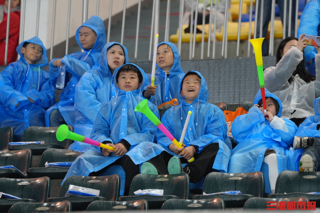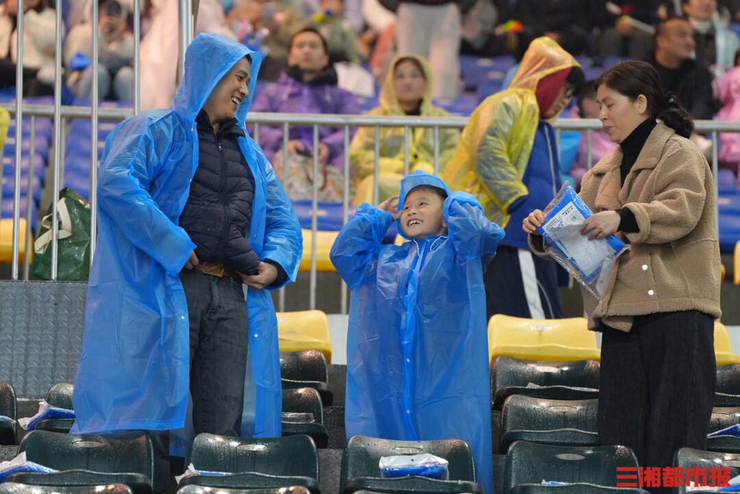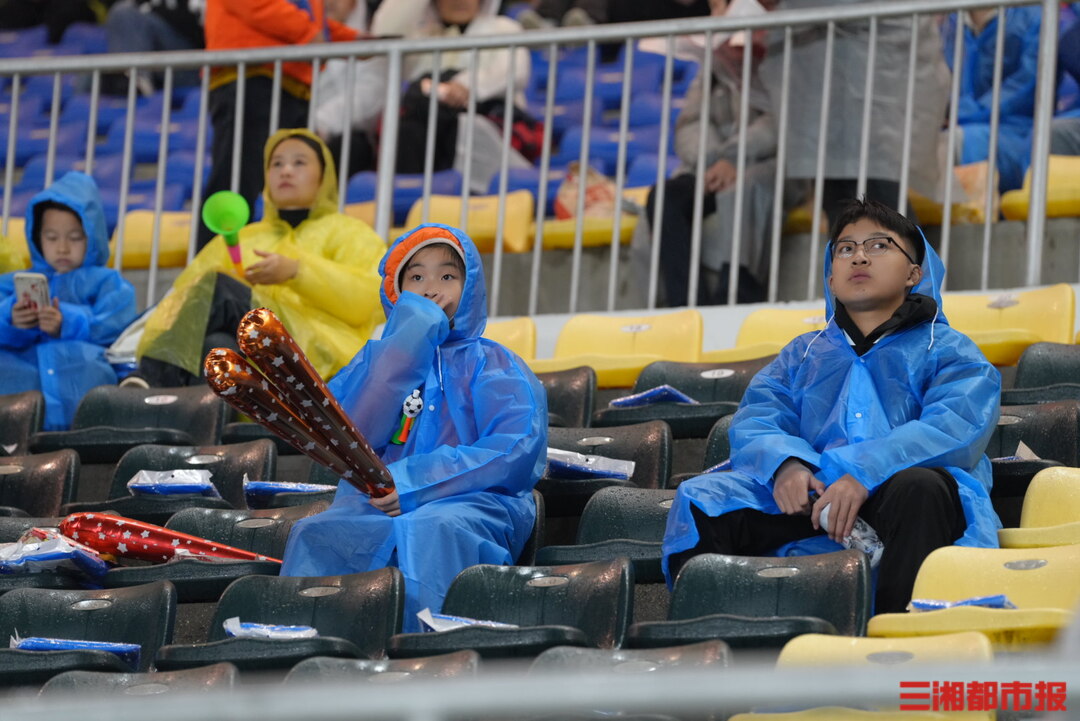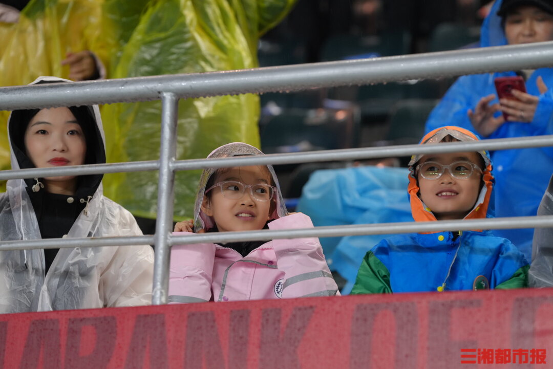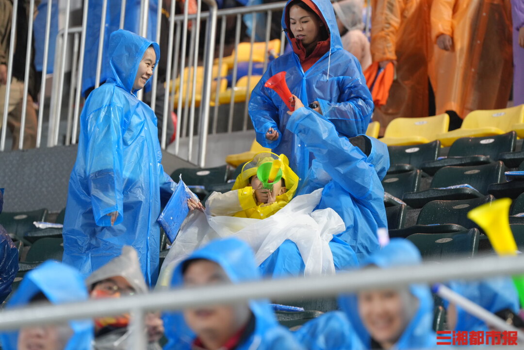 11月8日,2025湘超联赛益阳队对阵邵阳队开场前夕,球迷陆续披着雨衣到达现场,球场被雨浸润,却藏着最纯粹的期盼。小小身影冒雨等待,每一秒坚守,都是对足球最热烈的告白。(顾荣 叶竹 袁红霞 黄亚苹 唐雨琪 周洋 摄)