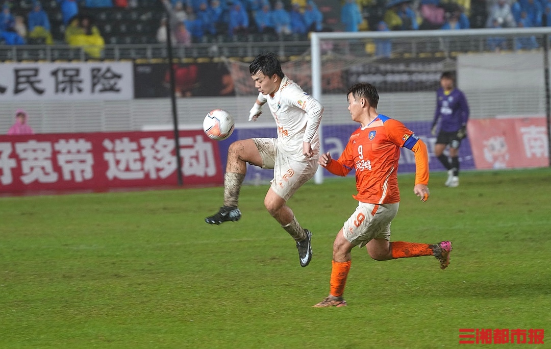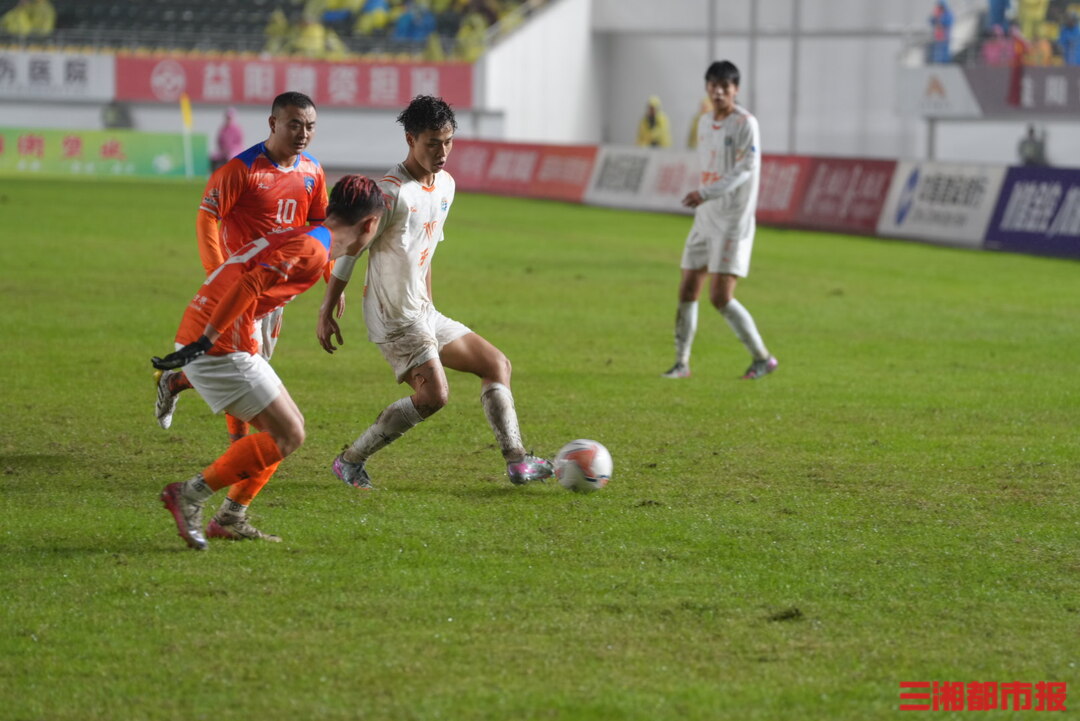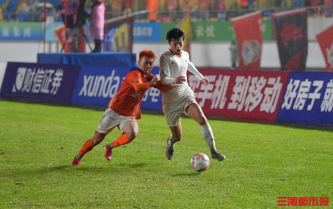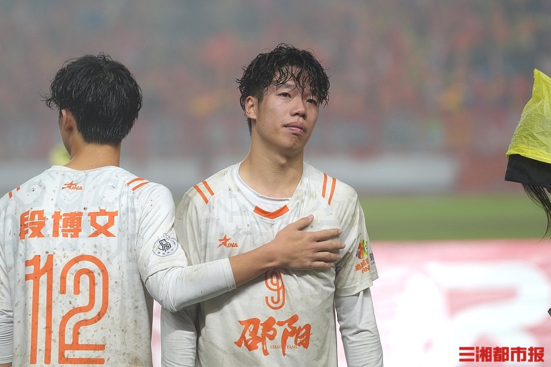 11月8日晚,益阳奥林匹克公园体育场,湘超联赛第九轮,邵阳队0比2不敌益阳队。赛后,邵阳球迷齐喊“一起扛”,给予队员们暖心鼓励。大雨中,邵阳队员真情流露,唐于尧更是大哭了一场。(全媒体记者 叶竹 袁红霞 顾荣 黄亚苹 唐雨琪 周洋)