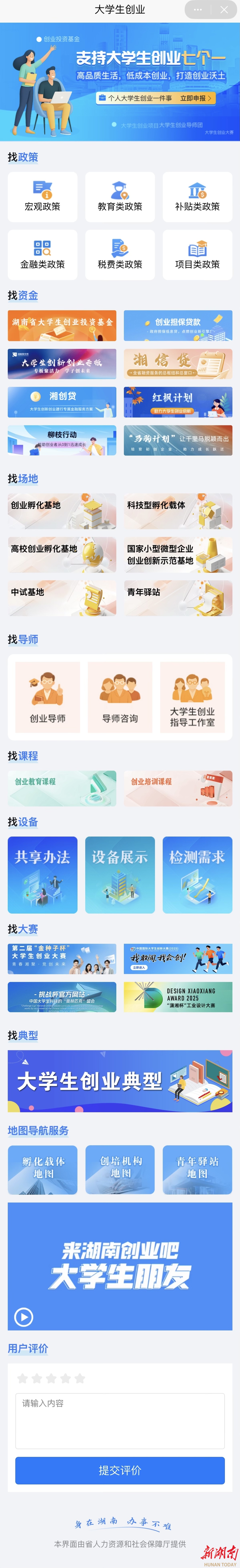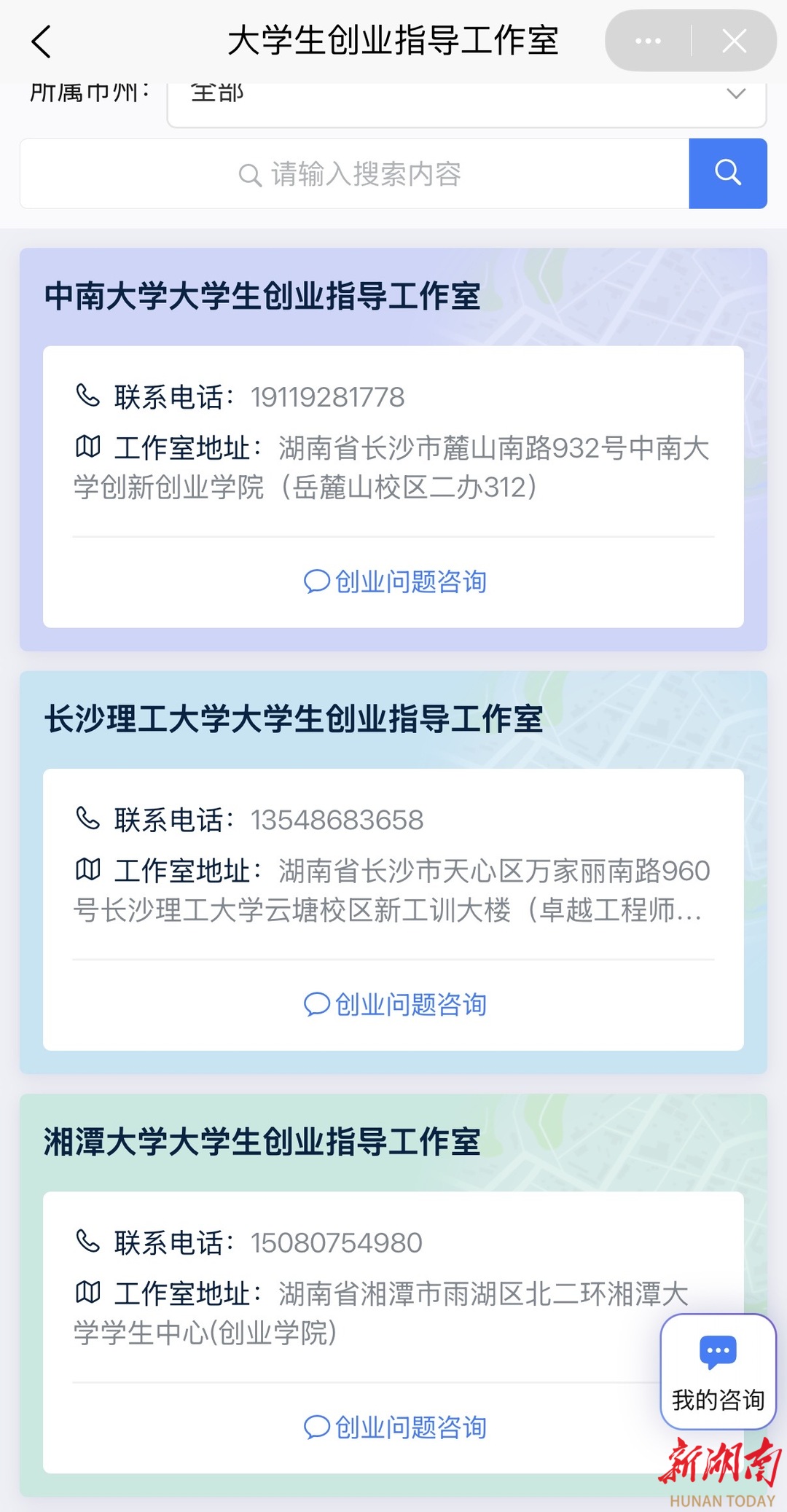 还有中南大学、长沙理工大学等高校创业指导工作室提供本校化、精准化的线下咨询与帮扶。