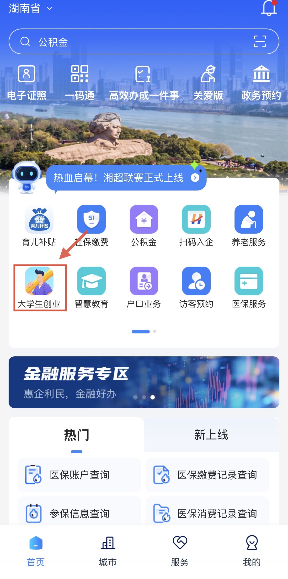 立即登录“湘易办”APP,首页点击进入「大学生创业」专区,开启你的创业之旅!