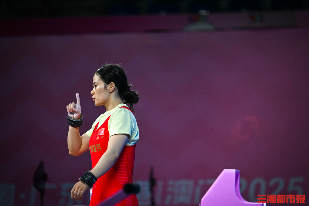 11月11日晚,东莞石龙中学体育馆,第十五届全运会举重女子59公斤级决赛举行,巴黎奥运会冠军、陕西全运会冠军、桂阳妹子罗诗芳以抓举105公斤、挺举130公斤、总成绩235公斤的成绩夺得金牌,这也是湖南体育代表团本届全运会第三枚竞技项目金牌。另一名湖南选手黄柯总成绩221公斤,获得第五名。