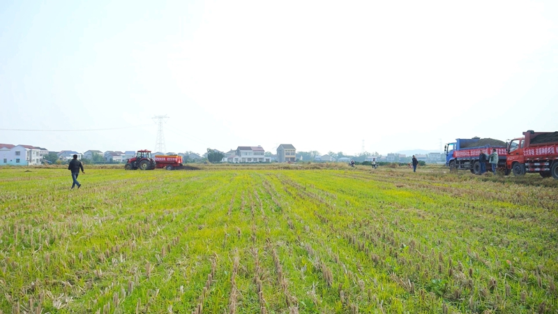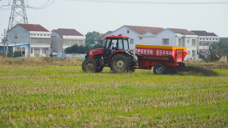 初冬时节,在石门县易家渡镇军档桥村的田野上一派繁忙景象:一辆新型农用施肥机正匀速穿梭在即将种植油菜的田里,随着机械运转,黑色的粪肥被均匀抛洒在田垄间。