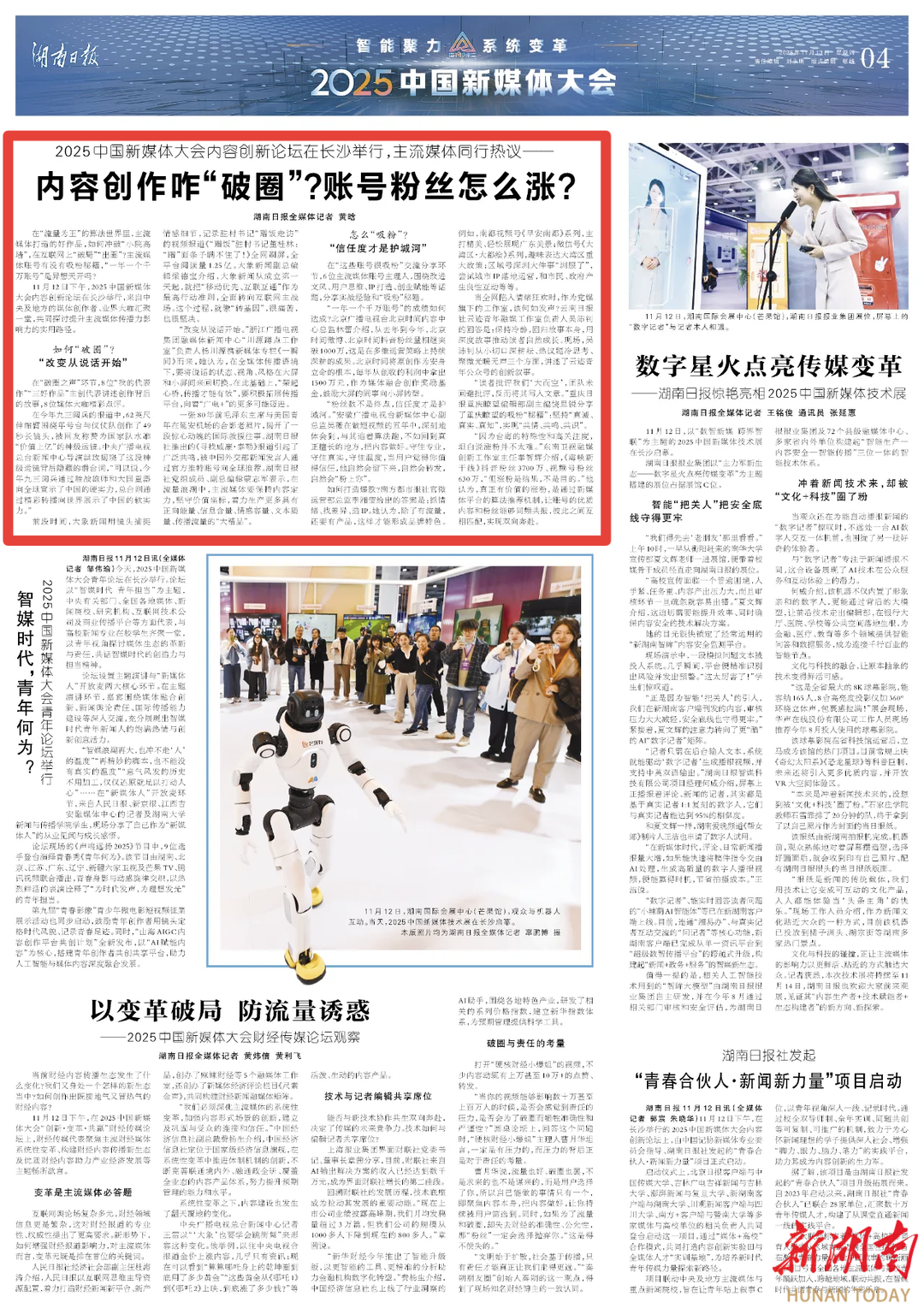 2025中国新媒体大会内容创新论坛在长沙召开,主流媒体同行热议——
