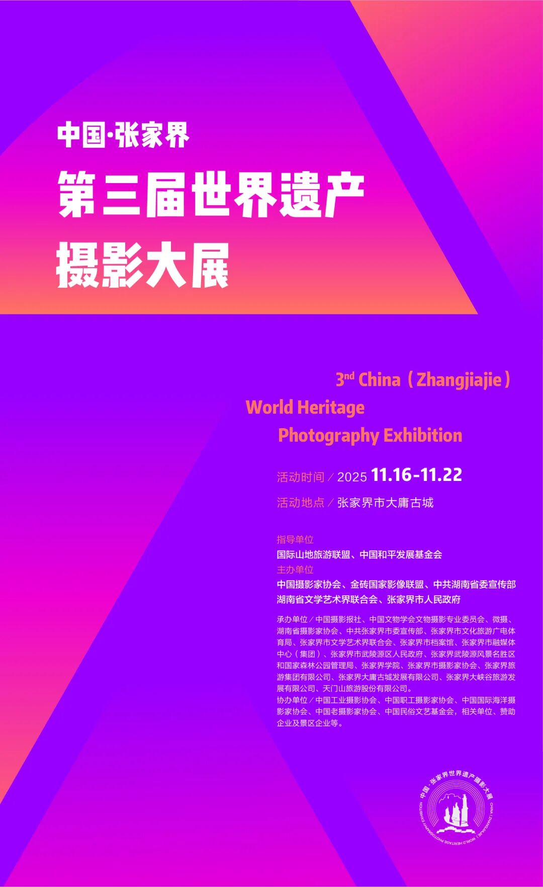 承办单位:湖南日报社湘视频道、张家界市文学艺术界联合会、张家界市武陵源区委宣传部、张家界市武陵源区文化旅游和商务局、湖南武陵源(天子山)索道有限公司、湖南日报融媒传播有限公司、湖南图片库