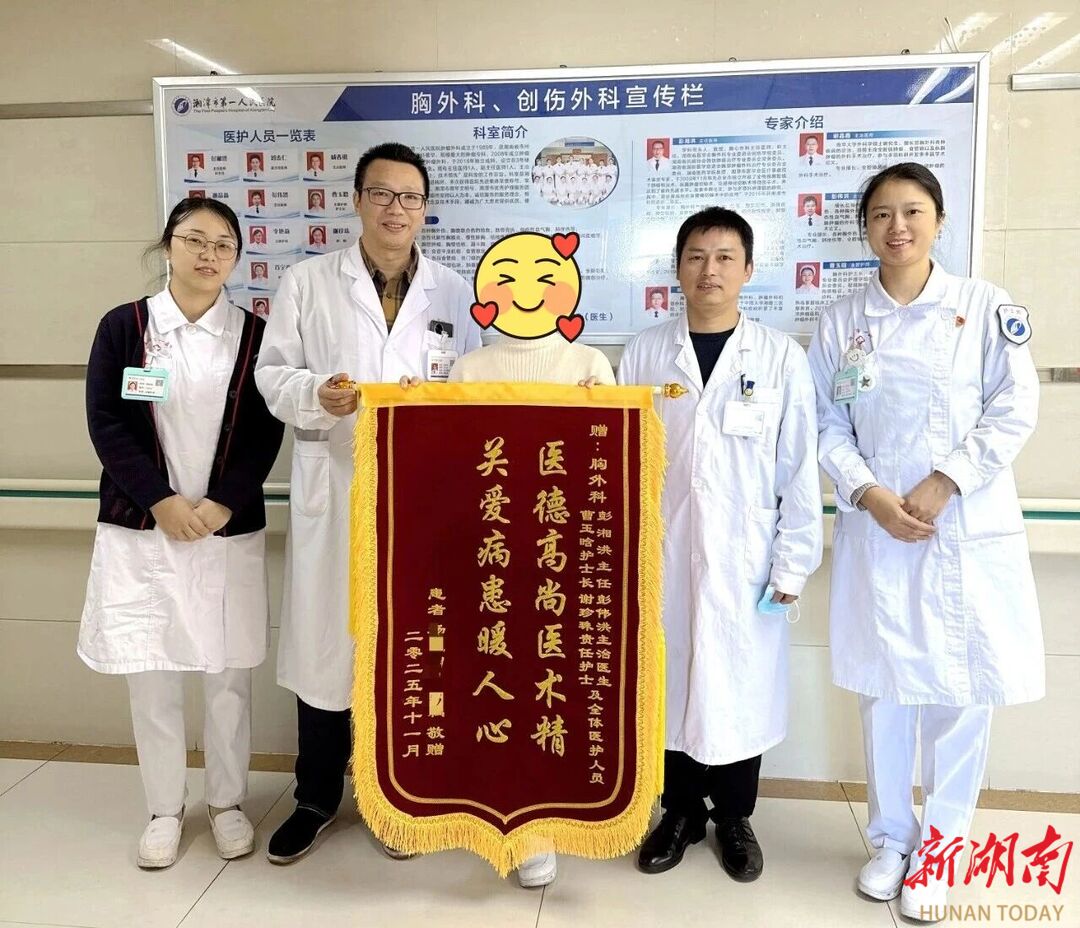 大众卫生报·新湖南客户端11月15日讯(通讯员 陈朝)在湘潭市第一人民医院(湘潭市肿瘤医院)胸外科的病房里,78岁的杨爷爷正认真地吹着一个气球。这个简单的动作,对他而言,却是一场胜利的庆典。当科主任彭湘洪告诉他“恢复得很好,很快就能回家”时,老人脸上绽放的灿烂笑容,瞬间温暖了整个房间。这轻松一刻的背后,却是一场惊心动魄、多学科联动的生命守护战。