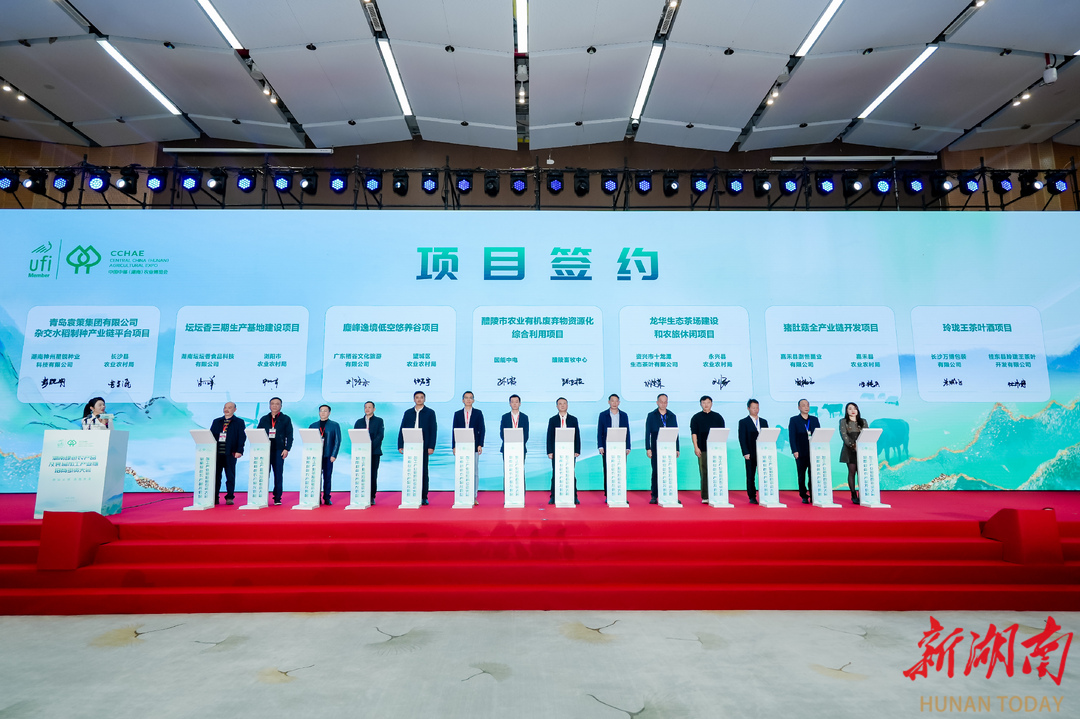 会上,张家界市、望城区、衡阳县、岳阳县、新化县、中方县等6大市县(区)还进行了特色项目的集中推介,共吸引28个项目签约,涵盖杂交水稻制种、预制菜生产、有机废弃物资源化利用、茶场建设等多个前沿领域,为湖南农业高质量发展再添新动能。