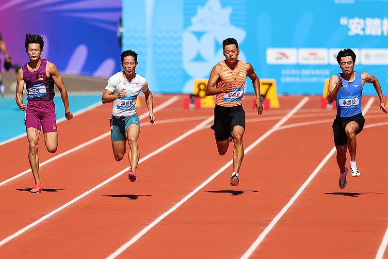 △男子100米预赛,杨俊、邓信锐、谢震业、李孟源(从左至右)。