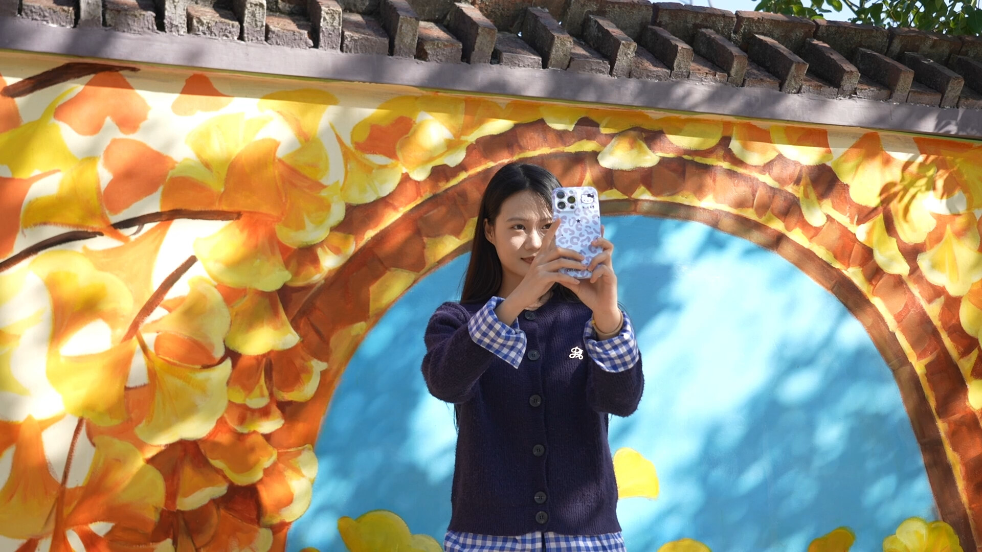 “我是从小红书和抖音,刷到了中方有这么一条银杏路,非常美。今天玩得挺开心的,也拍了很多好看的照片,你看这里的墙绘,有二十四节气和卡通小猫咪,站在墙边拍照,特别出片。”游客张心悦翻阅着手机里刚刚拍摄的照片,高兴地说。