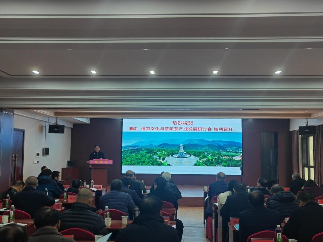 初冬茶陵,寒意渐浓,却挡不住文化传承的炽热与产业奋进的热忱。11月18日,湖南茶陵神农文化与茶陵茶产业发展研讨会在茶陵圆满召开。此次盛会由茶陵县神农文化研究会主办,茶陵县茶叶产业促进会、湖南一心大药房连锁有限公司协办,参会阵容群贤毕至。出席此次活动有深耕神农文化研究的特邀专家学者、省茶业协会及省市炎帝神农文化研究会的行业领军者;株洲市文联负责人,炎陵、安仁、攸县等周边县市炎帝神农文化研究会代表;茶陵县委副书记、县长朱毅强及何文龙、谭漪、刘小琴等县领导,县文联、文旅局、农业农村局、两叶办等相关部门负责人,本土茶文化研究人员、茶产业从业者、各融媒体记者及协办单位代表等中坚力量参加。百余人齐聚一堂,共叙神农文脉传承,共商茶产业发展新篇,为茶陵文旅与产业融合发展凝聚智慧与力量。