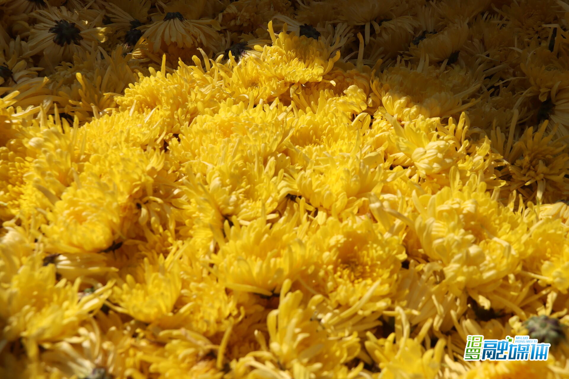 基地里,采下的鲜花被迅速送往村里的就业帮扶车间。厂房内,工人们正仔细地挑拣残瓣、按花型精细分类,随后将它们送入恒温烘干车间。梁新建介绍,多年来,他们始终严格把控着采摘时间、烘干温度和分拣标准,以过硬品质维护九雁村“金丝皇菊”的品牌声誉。早期销售主要靠朋友口口相传,随着名声渐响,如今,产品更是销往广东等地。