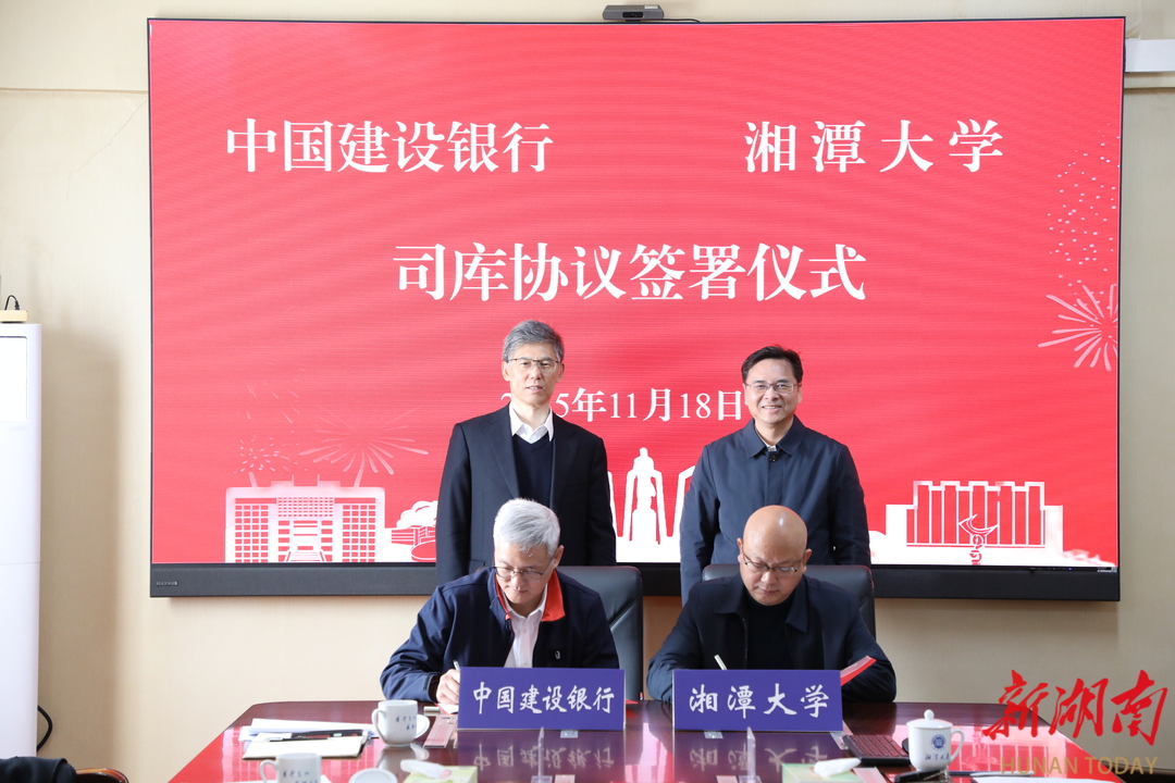 湖南日报·新湖南客户端11月19日讯(通讯员 张淦)11月18日上午,湘潭大学与中国建设银行司库协议签署仪式暨交流座谈会举行。中国建设银行结算与现金管理部总经理刘守平、校长廖永安等出席会议。会议由校党委副书记肖志伟主持。