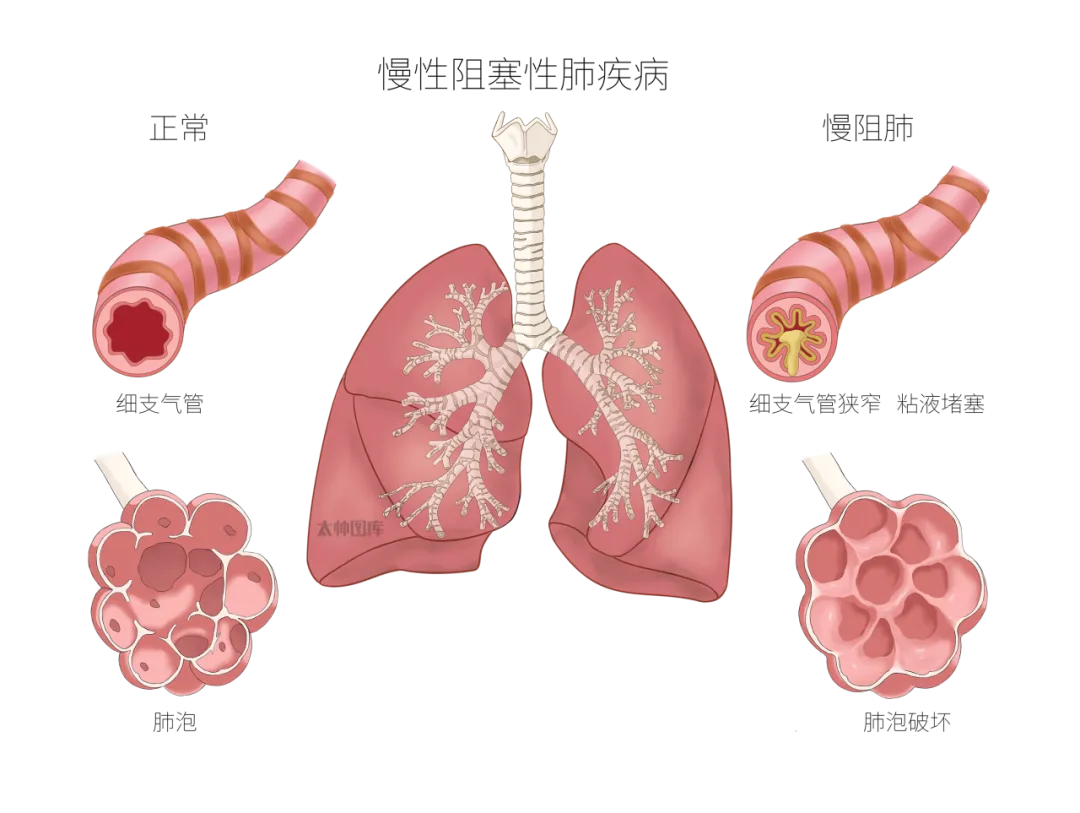 追溯慢阻肺的诱因,吸烟是首要“元凶”,80%以上的患者有吸烟史,二手烟、三手烟的危害也不容小觑。此外,PM2.5等空气污染物、高温爆炒产生的厨房油烟、矿山、建筑等行业的职业粉尘与化学气体,以及遗传因素、儿童期反复呼吸道感染等,都可能增加患病风险。