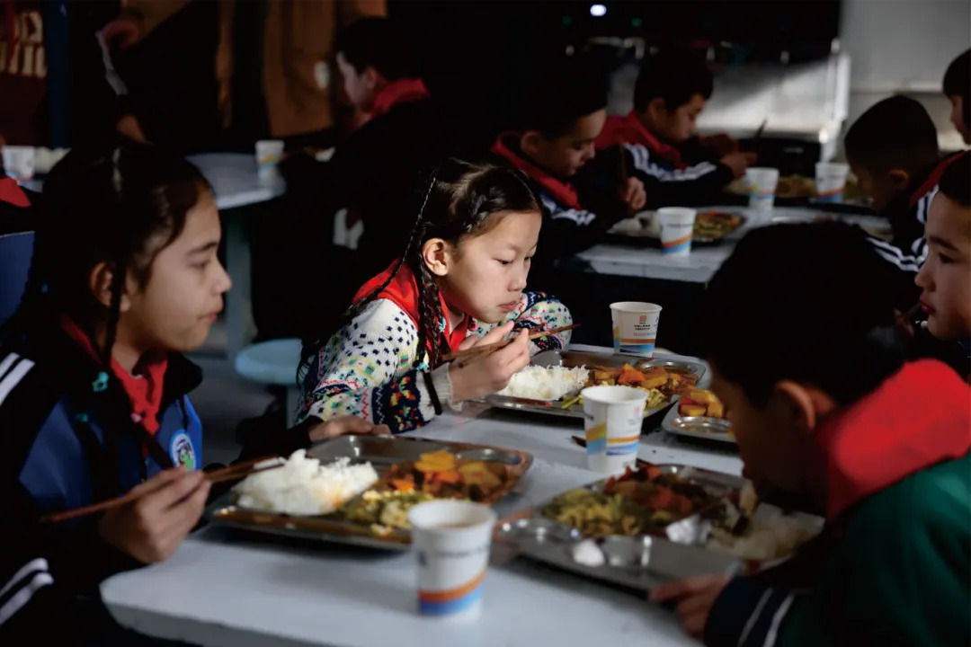 2024年12月16日,湖南援疆引入的“免费午餐”公益项目在托克逊县克尔碱镇中心学校开餐。王立三 摄