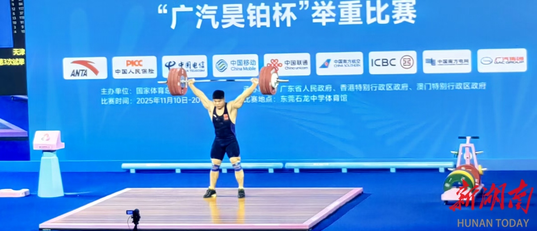 湖南日报·新湖南客户端11月19日讯(通讯员 邓和明 全媒体记者 梁可庭)11月19日晚,在广东省东莞市石龙中学体育馆,2025年第十五届全运会举重男子102公斤级决赛现场,巴黎奥运会举重冠军、嘉禾籍选手刘焕华以抓举185公斤、挺举229公斤、总成绩414公斤的成绩获得金牌,同时,创全国成年总成绩纪录、超亚洲成年总成绩纪录、超世界成年总成绩纪录,顺利实现举重项目“大满贯”的梦想。