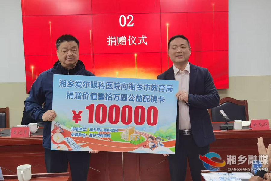 启动仪式上,湘乡爱尔眼科医院向湘乡市教育局捐赠总价值10万元的公益配镜卡,将为全市10所学校的100名品学兼优、家庭困难且有配镜需求的学生,提供专业的验光及配镜服务。湘乡市教育局向爱尔眼科医院颁发“情系教育 爱心助学”荣誉牌匾,对其积极投身公益、助力教育事业的行为予以表彰。