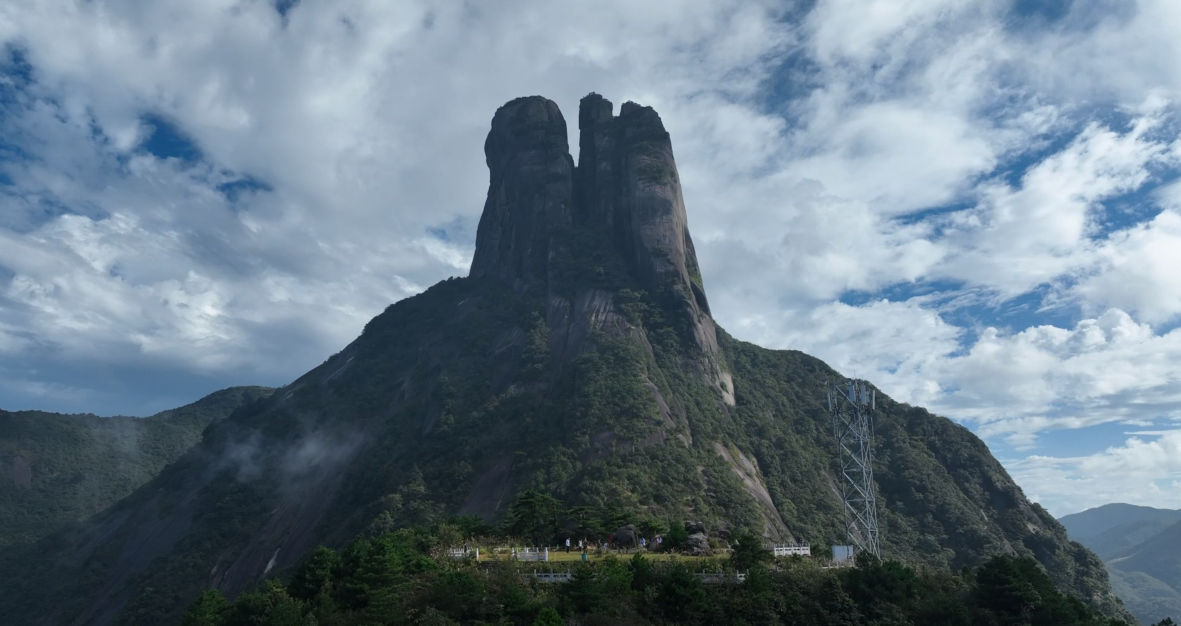 三分石位于宁远县城南约60公里,地处宁远与蓝山两县交界处,海拔1822米,是九嶷山第二高峰。三分石是潇水、岿水、沱水的发源地,故名“三分石”。三分石由三块360余米高的花岗岩经亿万年风化形成“三峰并立”地貌,又叫三峰石、舜公石。