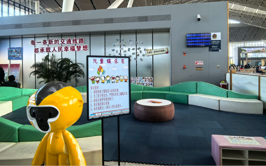 今年年初,北京西站对儿童娱乐区进行全面升级改造,全新区域以“安全、趣味、多功能”为核心,为候车儿童打造温馨舒适的专属空间,获得旅客家长广泛好评。