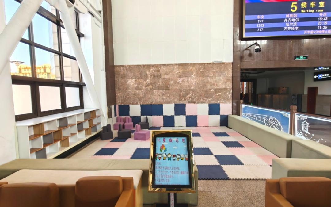 家长李女士表示:“以前候车时孩子总坐不住,到处跑,现在有了这个娱乐区,孩子能安心玩,我们家长也能放松会儿,软包设计特别贴心,不用担心孩子磕着碰着,感觉车站服务特别好。”