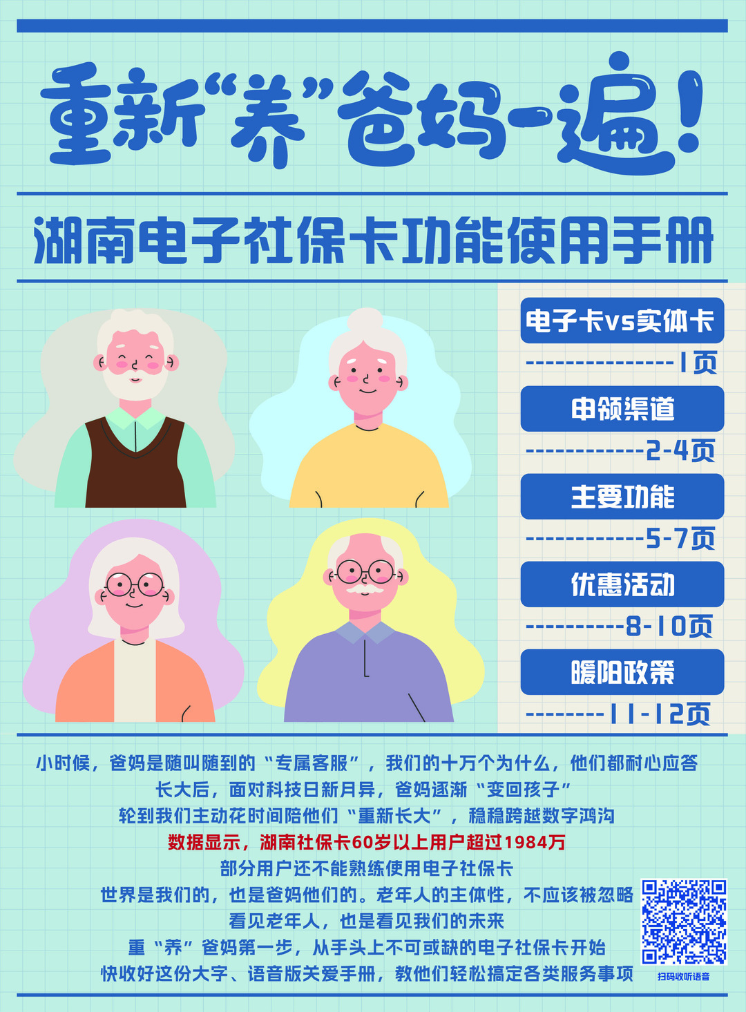数据显示,湖南社保卡60岁以上老年用户超过1984万;签发电子社保卡4024.52万张,较“十四五”初期增长168.8%。这份看得见、听得懂、学得会的手册,是省人社厅面向他们创新推出的适老化举措,也是民生工作的温度体现,让发展成果惠及每一代人的生动实践。