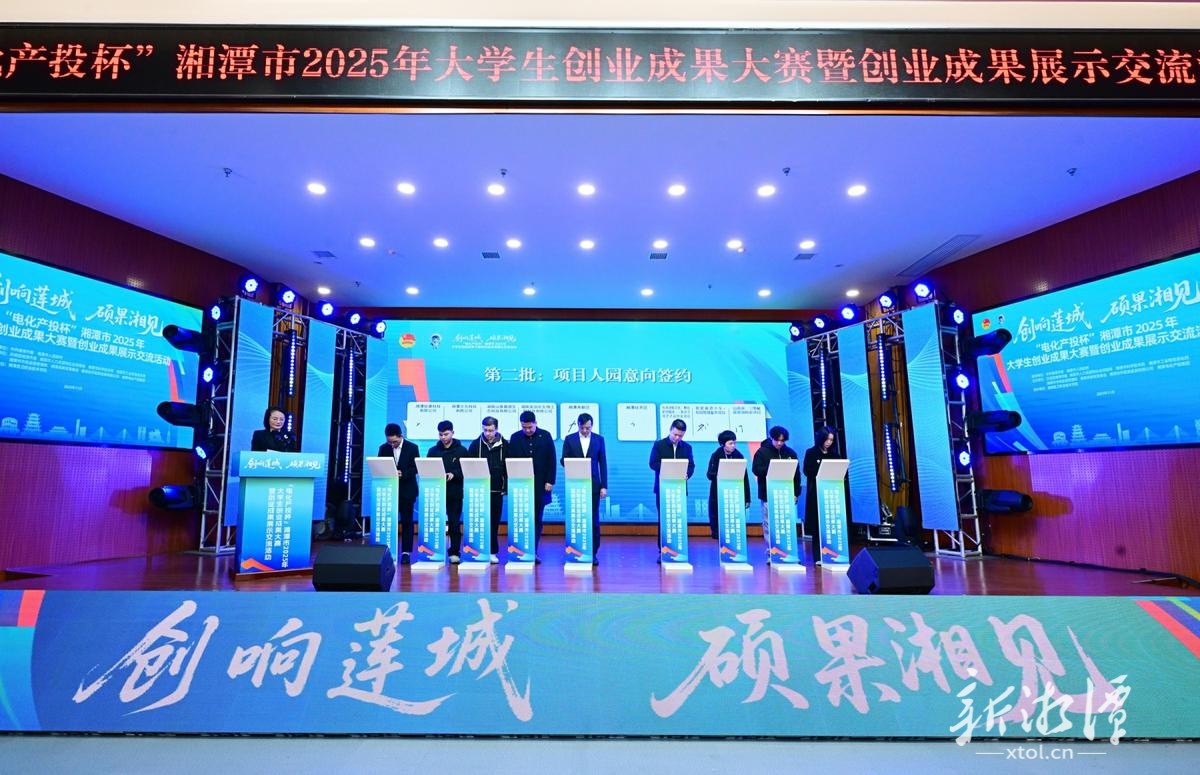 活动中,刘定阳团队的“全域智译”、毛馨苑团队的“钛韧骨安”、龙荣亮团队的“智调毫厘”等大学生创业成果优秀项目进行了精彩路演。8家主办单位负责人共同开展“湘潭市创业政策你知道”微宣讲,发布“大学生创业城市数字地图”和“莲小创”湘潭大学生创业成果IP形象。现场还举行了投融资意向签约和项目入园签约仪式,一批优质项目获得创业资金支持和落地发展机遇。