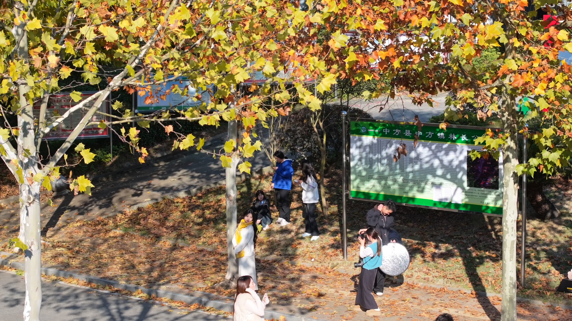 来自芷江的摄影爱好者周晓杰正操控无人机航拍全景,“每年都会来中方拍摄秋冬景致。梧桐大道的金黄、银杏路的‘黄金铠甲’,每一处都特别出片,我们自发组队来创作,就是想把怀化的美景宣传出去。”