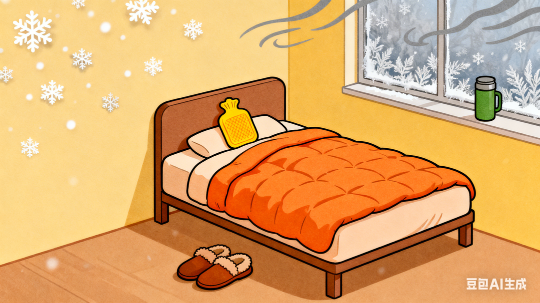 睡眠保暖:人在睡眠时人体阳气内守,卫外能力减弱,冬季可穿着宽松的棉袜入睡,将艾叶、干姜粉装入布袋放置于床尾,借助药力温经散寒。
