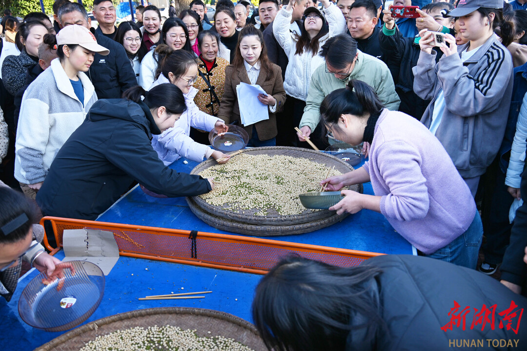 11月21日,澧县如东镇如东铺社区文化广场,村民们正热火朝天地进行捡黄豆竞赛。当天,该镇举行全民健身运动会,精心设置了运粮、挑扁担、捡黄豆等充满乡土气息的竞赛项目,吸引村民们积极参与。柏依朴 王铭 摄影报道(湖南图片库)