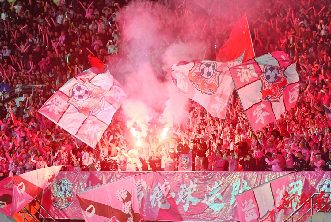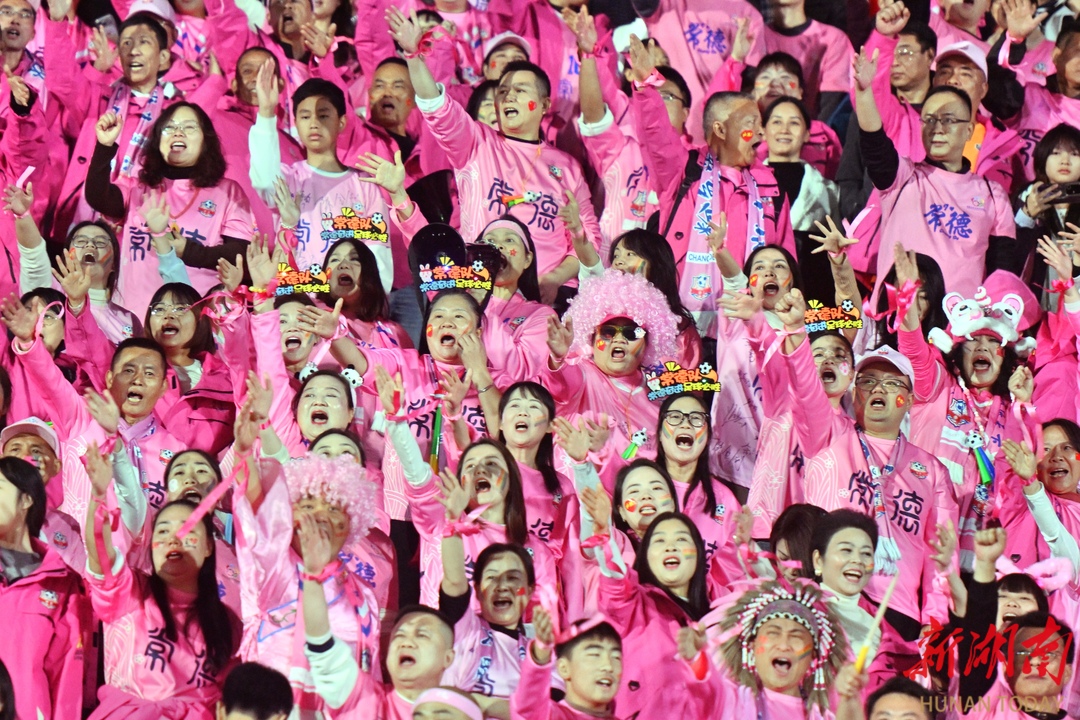 11月22日晚,球迷在加油助威。当天,湘超联赛第11轮,常德队在常德市体育运动中心主场对阵益阳队。最终,常德队以4比0战胜益阳队。湖南日报全媒体记者 郭立亮 摄