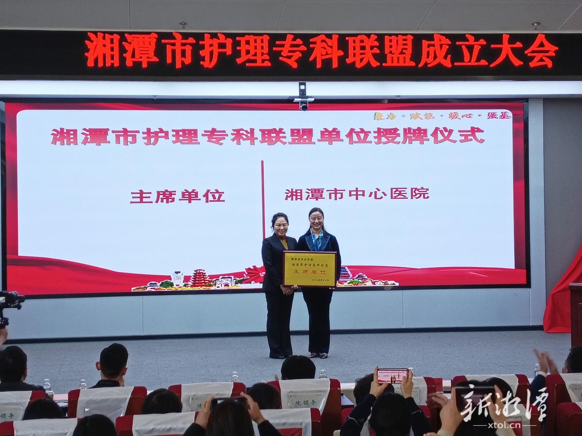 湖南日报·新湖南客户端11月23日讯(廖艳霞 陈晨)11月22日,湘潭市护理质量控制中心学术年会暨湘潭市护理专科联盟成立大会在湘潭市中心医院召开。该联盟的组建,标志着湘潭市护理事业正式迈入“集团作战、协同发展”的新阶段,将为全市人民提供更加优质、均等同质的健康护理服务。