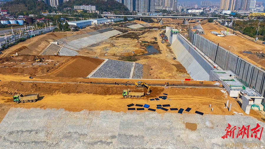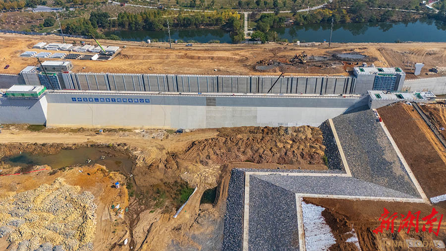 11月23日,湘江永州至衡阳三级航道建设三期工程潇湘船闸进入收尾阶段,中交二航局工人正进行附属设施施工。项目建成后将实现千吨级船舶通航,大幅降低物流成本,提升湘江水运效能。 雷中祥 摄(湖南图片库)