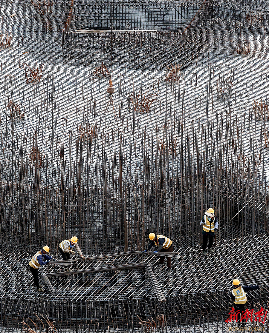 11月23日,湖南大中赫锂矿有限责任公司神家湾选厂,工人在一号综合泵站建设区绑扎钢筋。目前,该厂磨选厂房等主体工程同步推进,助推实现年采选矿项目生产能力2000万吨的建设任务。 陈卫平 王国庆 摄影报道(湖南图片库)