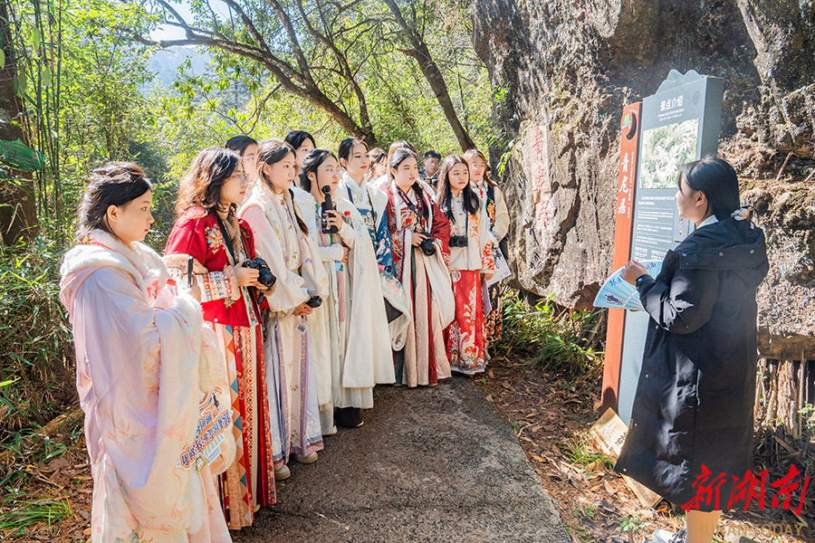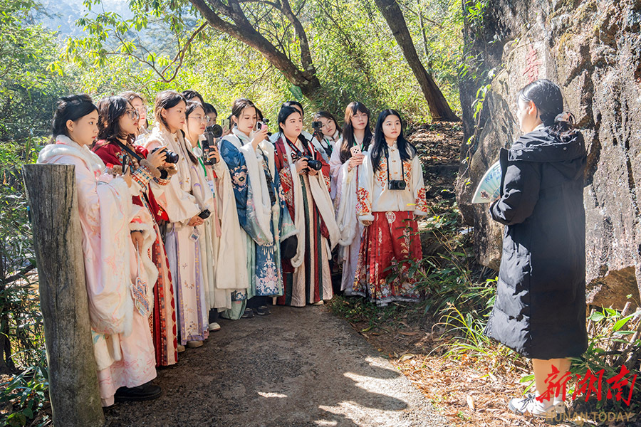 11月24日,“我在莽山集万物”科考研学营成员在郴州莽山国家森林公园参观。本次科考研学营依托湖南日报“青春合伙人”平台举办,来自省内五所高校的30名师生通过“文旅+科普”模式,探索研学新路径,是“2025策游湖南”系列之“跟着徐霞客游湖南·郴州行”的配套活动之一。 湖南日报全媒体记者 李健 摄