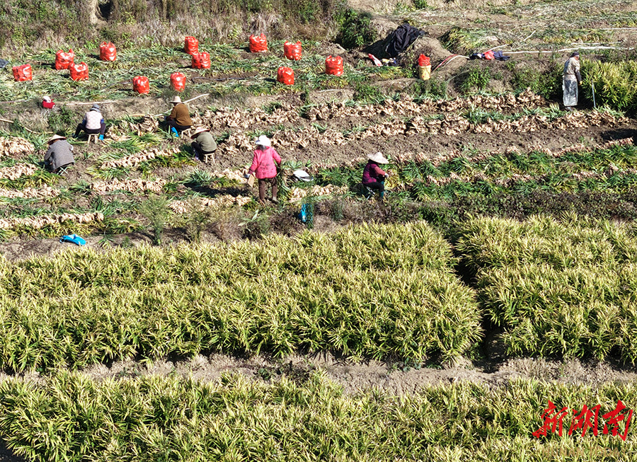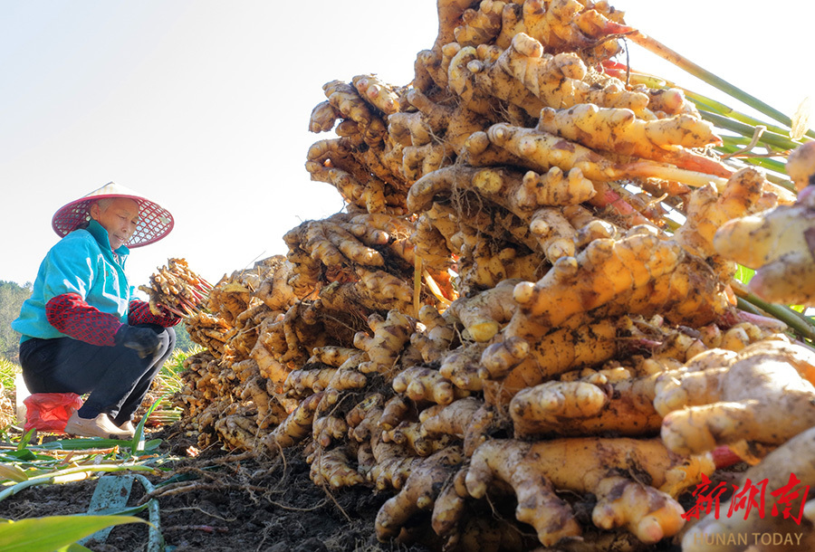 11月24日,汝城县土桥镇,村民在采收小黄姜。初冬时节,该镇种植的6000亩小黄姜喜获丰收,村民抢抓晴好天气采收,满足市场需求。近年来,该县大力扶持生姜产业,成为华南最大生姜集散地,产品远销中东,有效带动农民增收。 曹正平 段欣成 摄影报道(湖南图片库)