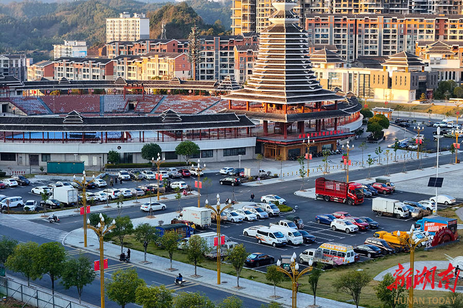 11月24日,通道侗族自治县萨岁广场免费停车场秩序井然。近年来,该县通过实施免费停车、村村通公交等惠民举措,切实解决群众出行难题,提升民生获得感。 李尚引 摄(湖南图片库)