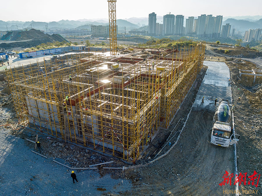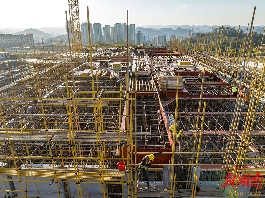 11月24日,吉首经开区箱包皮具产业园及配套设施项目(一期)建设现场,工人在施工作业。连日来,施工单位抢抓晴好天气推进配套设施建设,助力箱包皮具产业集聚发展。 彭璟 摄(湖南图片库)