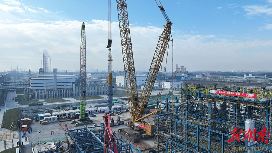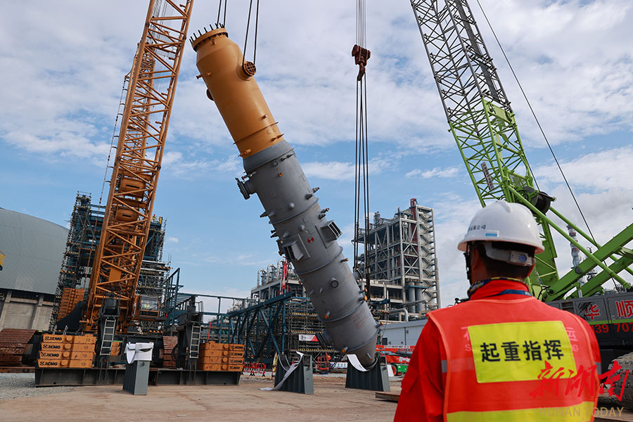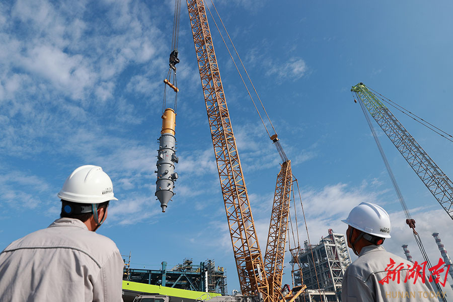 11月24日,湖南石化生物质气化柔性平台建设项目首台重达95吨的大件设备转化炉,成功吊装就位。目前,该项目钢结构已完成80%,后续流化床气化炉、二段及三段钢结构模块将依次吊装就位,预计12月5日前实现气化框架封顶。 彭展 邓骏 摄影报道(湖南图片库)