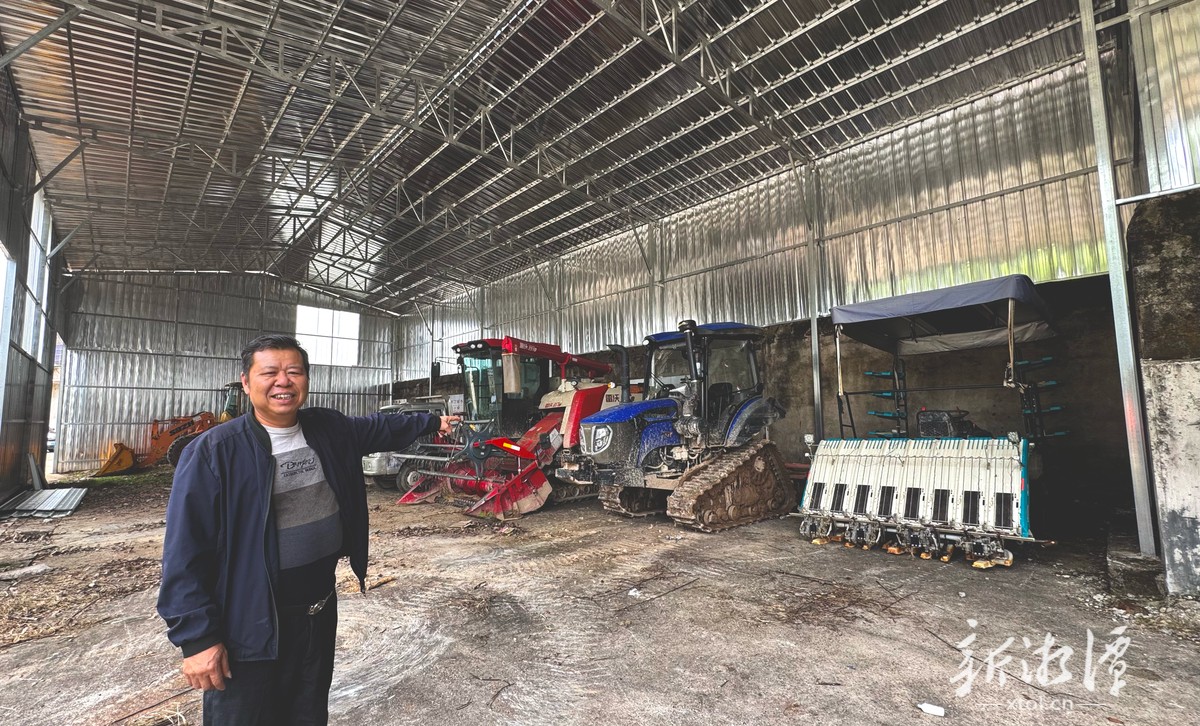 李信军和他的农机设备。(谭涛 摄)