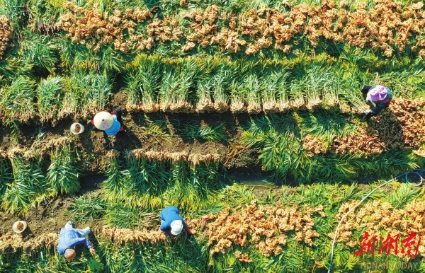 11月24日,汝城县土桥镇,村民在采收小黄姜。初冬时节,该镇种植的6000亩小黄姜喜获丰收,村民抢抓晴好天气采收,满足市场需求。近年来,该县大力扶持生姜产业,成为华南最大生姜集散地,产品远销中东,有效带动农民增收。