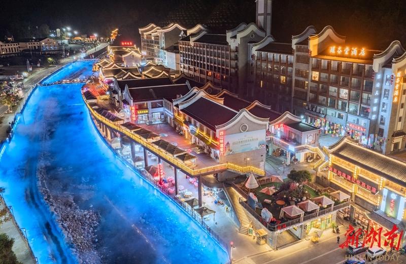11月24日晚,宜章县南花溪沿岸流光溢彩,如梦似幻。今年以来,当地以承办2025年郴州旅游发展大会为契机,围绕“一条河”休闲旅游品牌,采用“人工增雾”、灯光改造等方式,着力打造集休闲娱乐、文化体验、餐饮服务等多种功能于一体的休闲旅游街区,加快文旅融合。 湖南日报全媒体记者 李健 摄