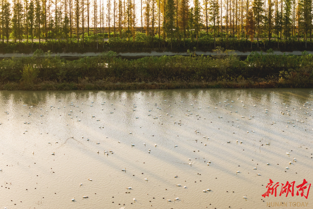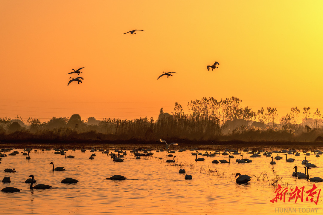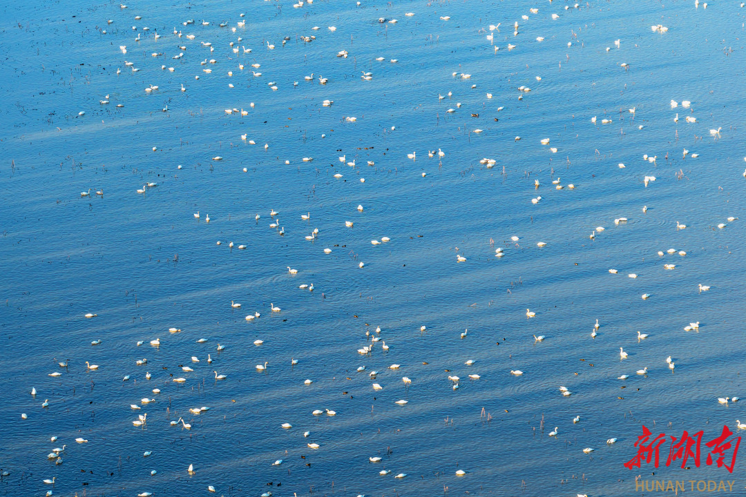 11月25日,小天鹅在飞翔、嬉戏、觅食。入冬以来,随着气温日益降低,约3000只西伯利亚小天鹅已飞抵位于岳阳市的屈原管理区东古湖鸟类栖息湿地公园。近年来,随着湿地修复工程见效,越来越多的候鸟选择在此栖息,呈现出一派和谐的生态画卷。 蔡小平 摄(湖南图片库)