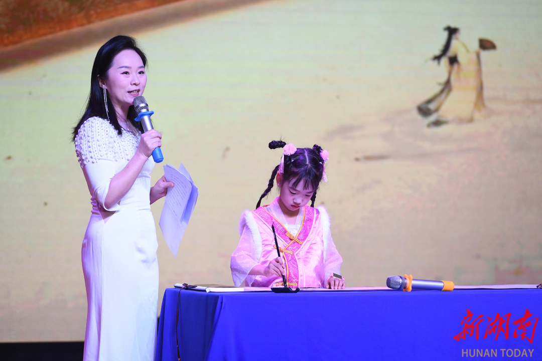 图为获奖者代表在表演书法。湖南日报全媒体记者 田超 王茜 摄影报道