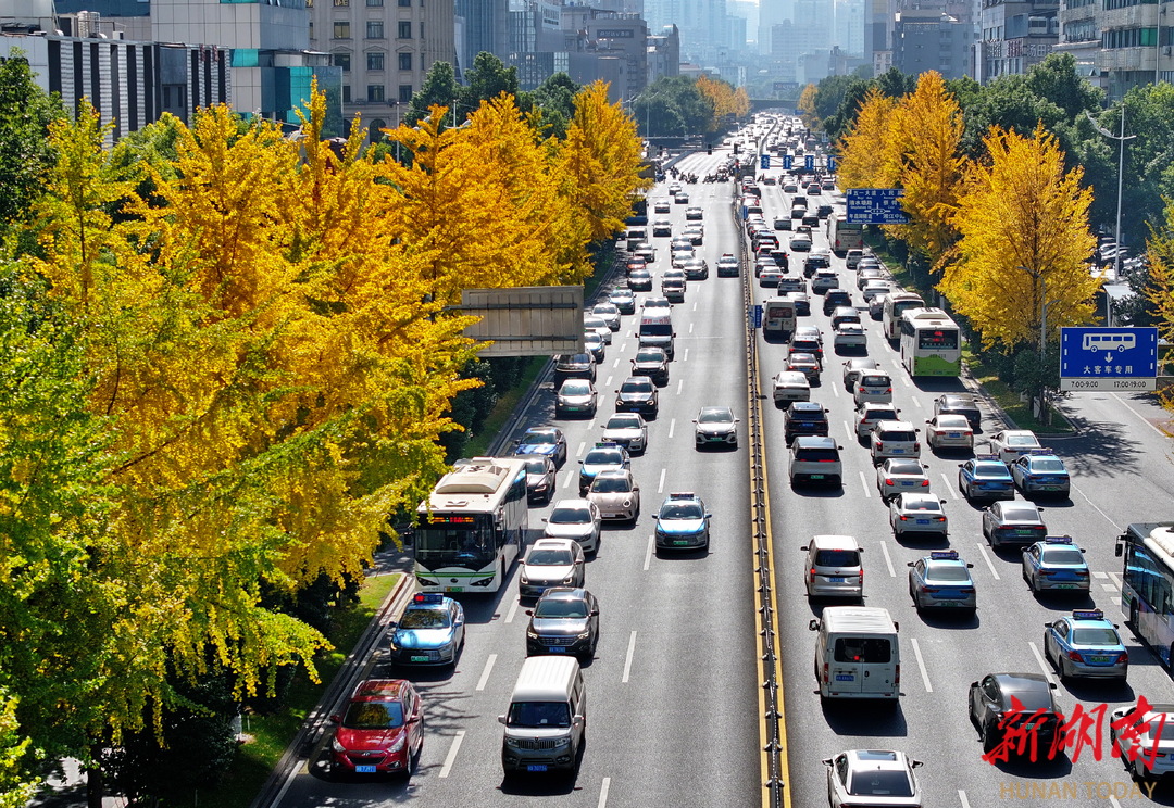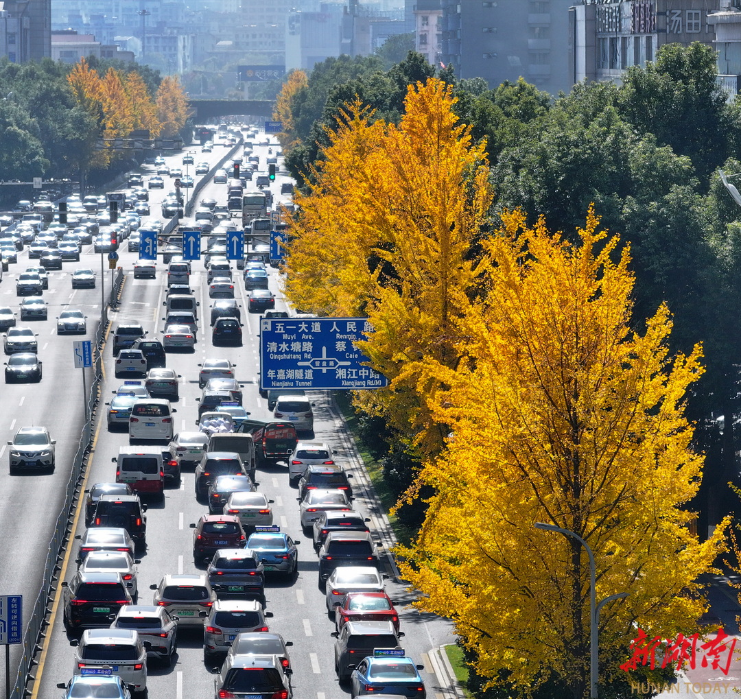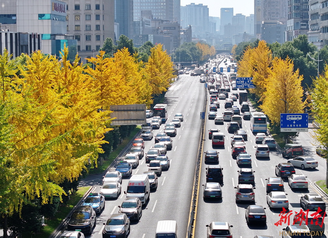 11月26日,长沙市芙蓉中路两侧银杏满树金黄,整条大道犹如一条流光溢彩的“金色长廊”。作为长沙标志性景观大道,芙蓉路的银杏每到此时便如期换上金装,为城市增添诗意与温暖,成为冬日里一道靓丽的风景线。湖南日报全媒体记者 童迪 摄