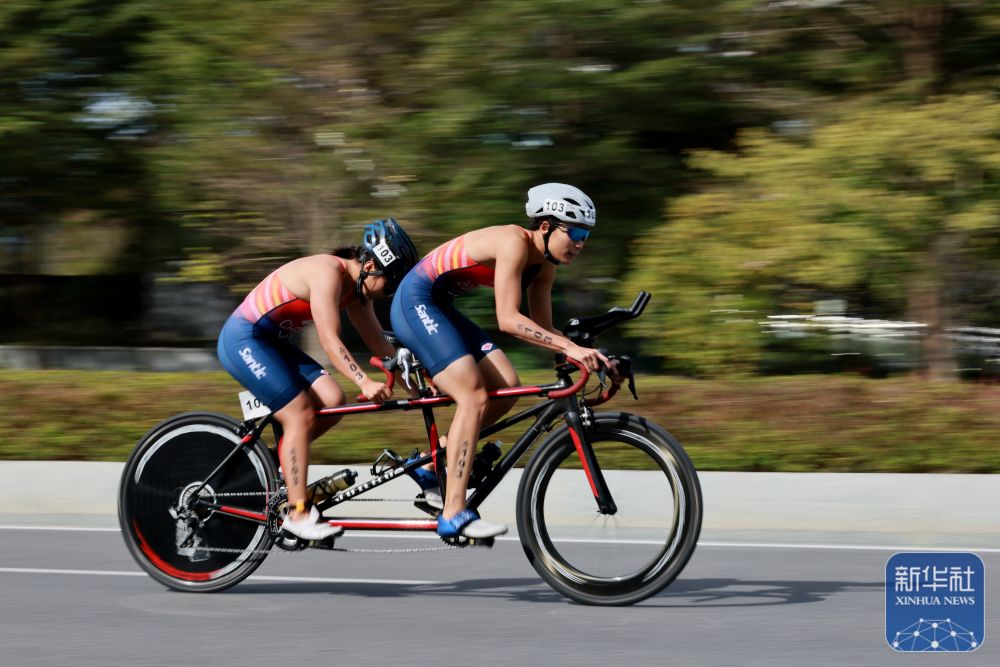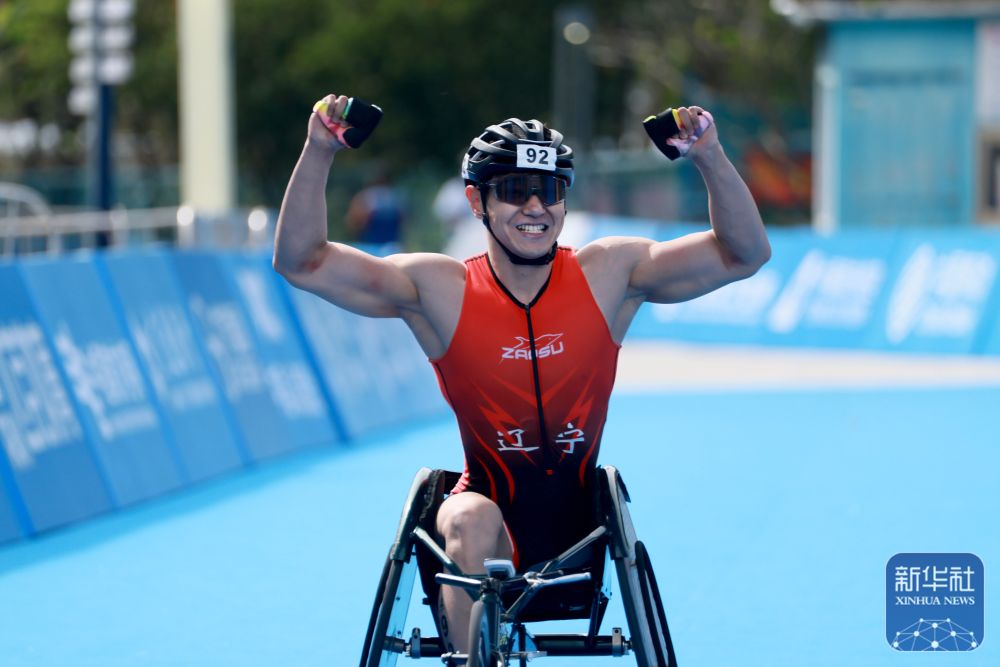 11月27日,全国第十二届残疾人运动会暨第九届特殊奥林匹克运动会铁人三项比赛在广东肇庆新区砚阳湖鸣枪开赛。