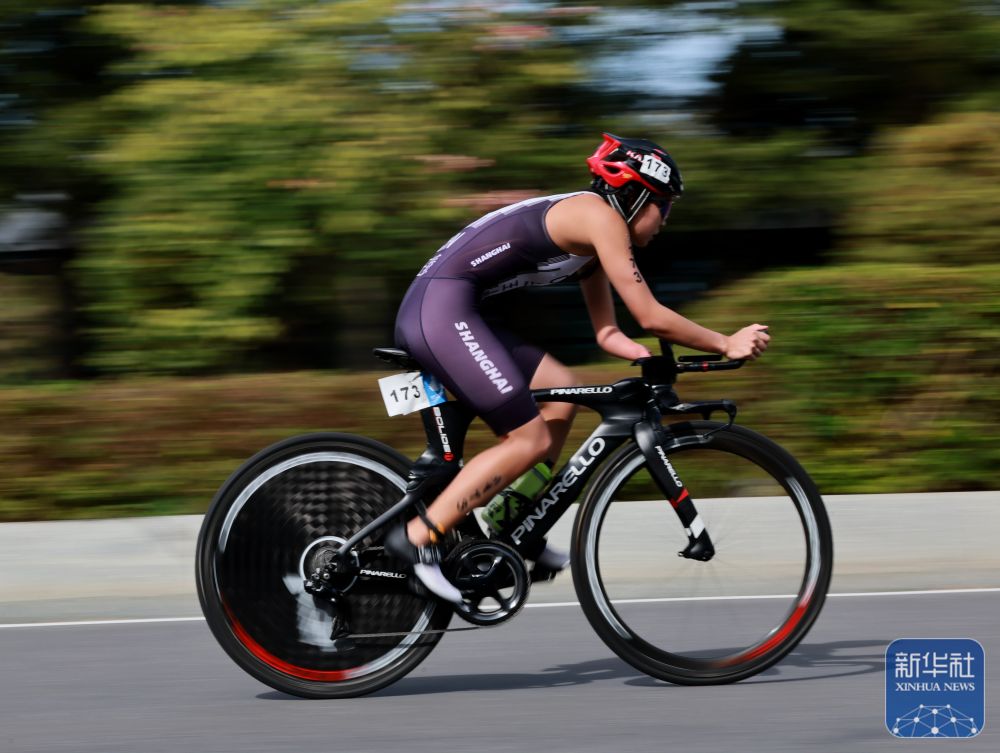 ↑ 上海队选手王紫菱在自行车比赛中。最终,她夺得女子PTS6级别金牌。
