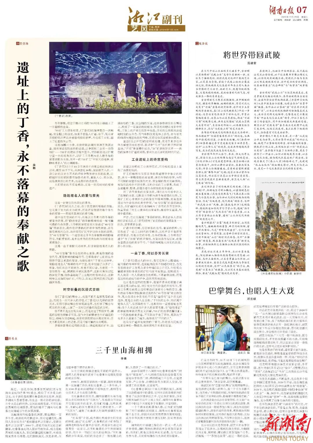 在本院演出团已属“大龄青年”的胡艺,对于单位的演出安排,不管是主角、配角、龙套甚至合唱,都认真对待,经常在各种惠民演出和杜鹃花戏剧大赛中,给一些比自己小一二十岁的小师妹配戏。他认为:“只有大家齐心协力,才能让湘剧绽放出吸引群众的夺目光彩。”