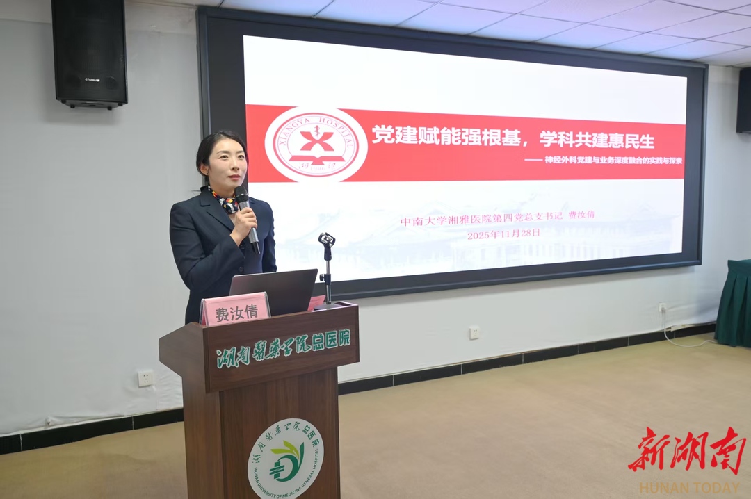 大众卫生报·新湖南客户端11月29日讯(通讯员 全从军 杨琳元 周芸芸)11月28日,中南大学湘雅医院第四党总支与湖南医药学院总医院神经外科、宣传统战党支部,联合开展了主题为“党建引领学科发展,支部联动精准帮扶”的主题党建活动。