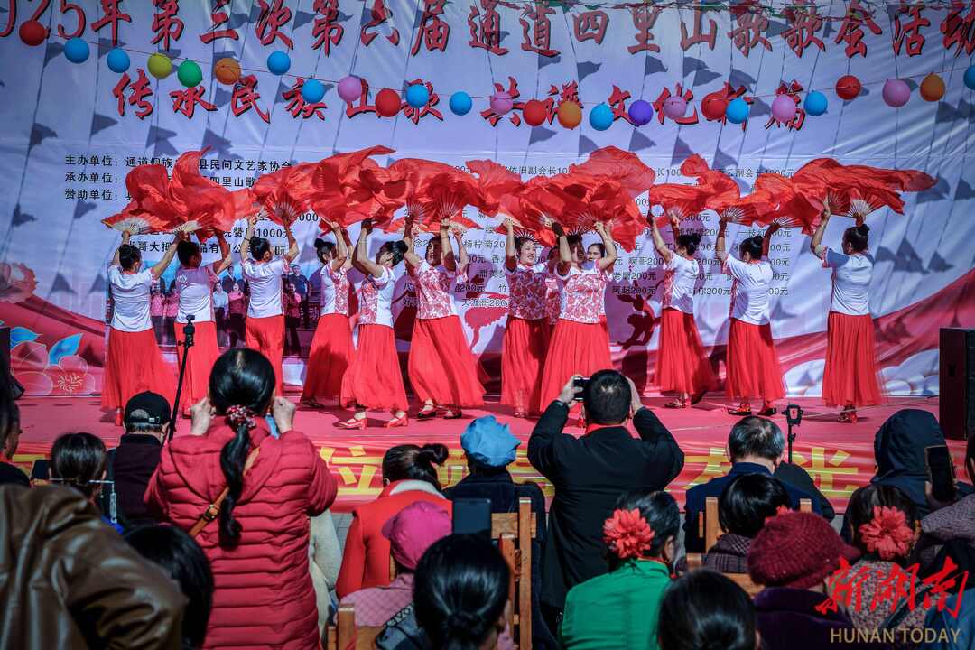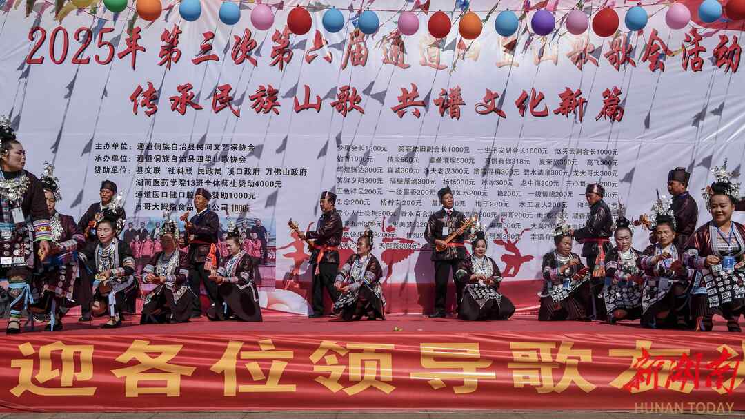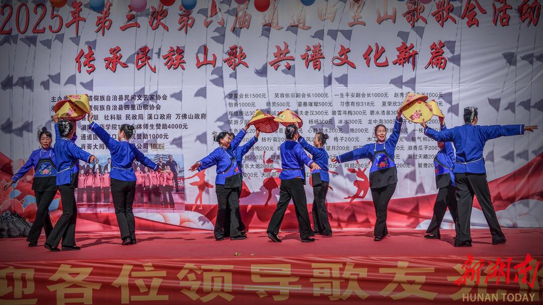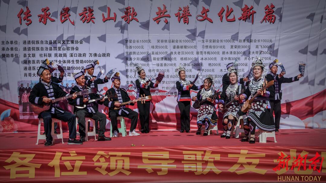 11月26日,一场四里山歌演唱会在通道侗族自治县万佛山景区大门广场举行。来自广西龙胜,贵州黎平,湖南通道,绥宁等周边乡村的民间歌手同台竞技,有花鼓迎宾,拦门对歌,有歌舞表演,山歌对唱,你方唱罢我登场,歌声嘹亮看谁强 。活动从早上9点开始迎宾,直至夕阳西下,各地歌手才依依不舍地离去。