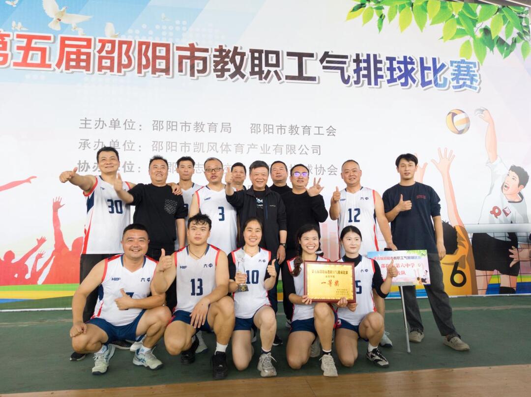 在11月16日圆满落幕的2025年邵阳市教职工气排球比赛中,邵阳市第六中学代表队凭借出色的团队协作、顽强的拼搏精神和精湛的球技,一路过关斩将,最终从众多市直气排球强队中脱颖而出,勇夺市直一等奖第一名。